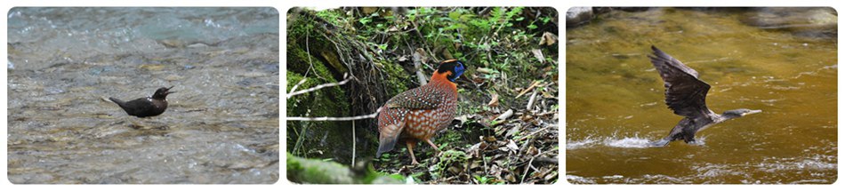 唐家河は生物多様性のホットスポットとしても知られており、小川、広葉樹林、断崖絶壁などがあります。中国で哺乳類や鳥類を見つけたい方にとっては最高の場所の一つとなっています。ここでの探検は主に午前中と午後の後半に行います。標高の低い2つの主な谷と、標高の高いところへの道は主要な探検地域です。標高の低い場所ではキンケイを主要な目標として探しに行きます。渓流沿いに、カワガラス、カワビタキ、シロボウシカワビタキを簡単に見つけることができます。やや難しいかもしれませんが、ヤマセミ、エンビシキチョウ、シロクロヒタキ、イソヒヨドリなども見つけられます。かなりの努力と好運が揃えば、ウオミミズクに出会えます。