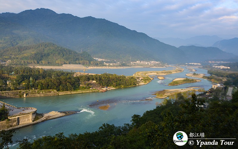 都江堰は四川省成都市の北西約 50 キロメートルに位置し、中国古代の水利施設の優れた 代表の一つです。紀元前256年に建設され、李氷父子によって設計されました。現在も使 用されており、中国古代の工学技術の知恵を十分に示しています。都江堰の工事には、分 水堤、魚嘴、飛砂堰などの重要な部分が含まれ、岷江の水害問題を効果的に解決し、周辺の農地に灌漑水源を提供しています。これは世界遺産であり、また中国文明の象徴の一つです。